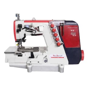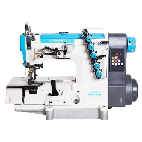 Galoneira Industrial de base plana aberta 3 agulhas com motor eletrônico direct drive, muito mais silencioso e econômico. SS80D-02-CBX364STES Galoneira aberta, coração externo, Direct drive*, control box acoplado ao cabeçote- Galoneira aberta+MESA com RODINHAS 220v