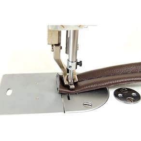 Máquina de costura industrial tipo galoneira com motor Direct drive. Aplicação para bainha, debrum (colarete) e rebatimento de elástico.