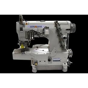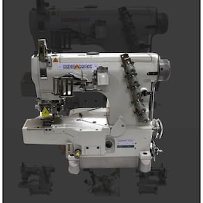 Motor Direct-Drive diretamente acoplado ao eixo da máquina; Economia de energia mínima de 60%.; Posicionador de agulha em cima/embaixo; Base plana Fechada; Trançador superior (removível) e inferior; 3 agulhas, 5 fios. Distância entre primeira e última agulha de 6.4mm (1/4"); Comprimento do Ponto de 1,2 a 4mm; Lubrificação automática por bomba de óleo; Velocidade de costura de até 6000 ppm, ajustável pela caixa de controle; Visor do nível do óleo. - Rotação máxima = 6000 RPM - Motor Direct drive (motor acoplado internamente na máquina) - Coração Externo ( mais fácil pra passar as Linhas)