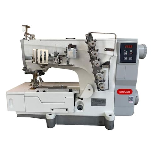 CARACTERISTICAS:Máquina de Costura Galoneira Singer Direct DriveEsta Máquina de Costura Galoneira é de Alta Velocidade e com Economia de EnergiaEsta é uma Galoneira Industrial de 3 Agulhas com o Trançador, é de Base Plana e Fechada, é completa !A máquina de costura galoneira é indicada para fazer trabalhos como bainhas, colaretes, golas, barras, aplicações de viés e debrum, rebatimento de elástico e tem um ótimo desempenho em tecidos médios e leves.Máquina GaloneiraMarca SingerModelo 514G-EBase plana3 Agulhas5 fios Design EXCLUSIVOEquipada com Motor Direct-DriveFunção de Posicionador de AgulhasControle de VelocidadeCom trançador superior e inferiorExcêntrico da linha do looper externoLuz de LED com área fortemente iluminada no grande espaço de trabalho Bitola de 6,4mmAltura do Calcador 5mmVelocidade de até 5000 Pontos por minutoTampo padronizadoEstante com RodinhasMontagem por conta do Comprador