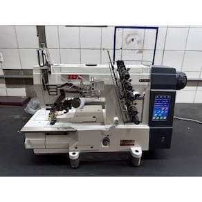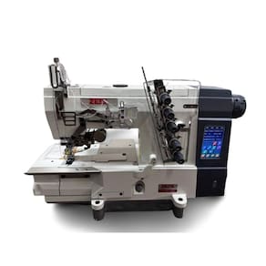 Máquina de Costura Galoneira Fechada Eletrônica Direct Drive - COM MOTOR DE PASSO Máquina de Costura Galoneira eletrônica industrial de base plana fechada, com corte de linha automático. Equipada de sistemas automáticos de fábrica como: posicionador de agulhas, levantador e posicionador de calcador e corte de linha. Ideal para confecções de malharia.