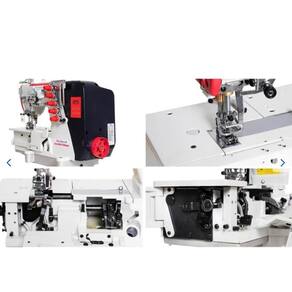 SS80D-01-CBX-364-STQI Galoneira, 110v+mesa plana, 3 agulhas, 5 fios, bitola 1/4 6.4mm, Direct drive, control box acoplado ao cabeçote, coração externo, 550w, 4500ppm, - Velocidade Máxima de 5.500 RPM com usb em Obd: porta fio de plástico reforçado - Pés com rodizios