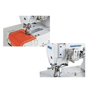 Velocidade máxima 5000rpm Nº de agulhas 3 distância entre agulhas 5,6 mm Largura máxima do ponto 4,4 mm Tipo de agulha usando UY128GAS - Utilização: Industrial - Base: Plana - Aplicação: Tecidos leves e médios - Sistema de Transporte: Simples - Nº de agulhas: 3 (Bitola 1/4 = 6,4mm) - Tipo de agulha: UYx128GAS - Nº de fios: 5 - Tamanho do ponto: de 1~4,4mm - Sistema de lubrificação: Automática - Tipo/potência do motor: Direct Drive 550W (Zero ruído) - Utilizada para fazer barras, pregar golas, mangas e punhos em camisetas - Furação para aparelhos de viés, barra e viés sobreposto - Pode ser utilizada com menos agulhas/fios, dependendo do trabalho a realizar - Pode economizar até 70% no consumo de energia elétrica - Sistema de refrigeração da agulha e linha por silicone Tampo emborrachado e Estante com Rodinhas. - Voltagem 220 vlts Aumento de produtividade em 15%. A função de parada de agulha superior e inferior proporciona o aumento da produtividade por dispensar o manuseio do volante. Motor Eletrônico (Direct-Drive) ligado diretamente ao eixo principal que proporciona maior agilidade na partida da máquina por não utilizar correia. Economia de energia seu motor eletrônico economiza de 60 a 70% de energia em relação ao motor convencional.