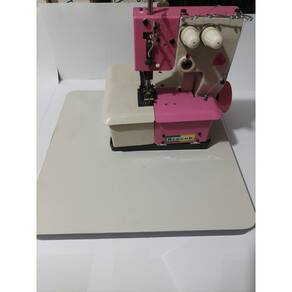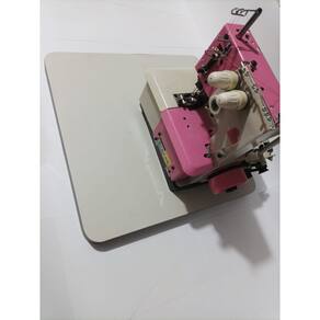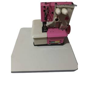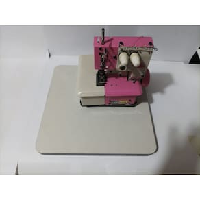 Máquina de costura semi-Industrial tipo galoneira.Aplicação para bainha, debrum (colarete) e rebatimento de elástico. Bracob Baby cor Rosa- 110V+ Base de Madeira 40x40x25