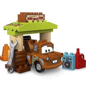 - Inclui grandes blocos de construção decorados como toldo com luzes de pimenta, uma tela de computador mostrando Lightning McQueen, rádio e uma placa de lar doce para casa