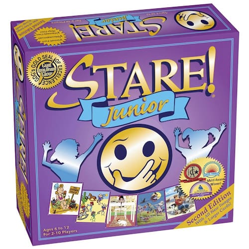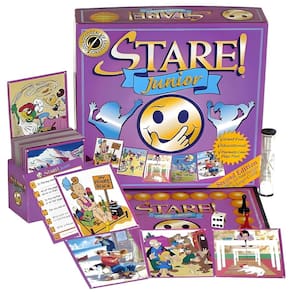 Stare Junior — O jogo emocionante e premiado de memória e observação — Divertido e educativo para toda a família, a partir de 6 anos - Apresentamos o Stare! Junior, um orgulhoso destinatário do selo National Parenting Center e do Teacher's Choice Award for Families! Este jogo envolvente cativa as crianças aprimorando suas habilidades de observação, memória e leitura enquanto se divertem. - Com cartões de imagem exclusivos, Stare! Junior coloca as habilidades de observação das crianças à prova. Os jogadores têm 30 segundos para examinar a imagem de uma carta e memorizar o máximo de detalhes possível. Com uma deliciosa variedade de ilustrações, fotos, animações e quadrinhos, nunca há um momento de tédio! - Quando o tempo acabar, os jogadores respondem a perguntas divertidas sobre a imagem, como: de que cor é o chapéu de aniversário da menina? Quantos presentes de festa o menino está segurando? O que há em cima da mesa da sala de aula? Cada resposta correta os aproxima do círculo de vencedores no tabuleiro de jogo. - Para nivelar o campo de jogo, o jogo pode ser ajustado para diferentes faixas etárias. Enquanto as crianças têm 30 segundos para olhar, os adultos terão apenas 10 segundos, permitindo que todos possam competir no seu melhor nível. Esta experiência divertida e educativa é o complemento perfeito para a noite de jogos em família! - Pronto para se divertir? Clique no vídeo Stare Junior para ver o jogo em ação! Projetado para educar e entreter, veja! Junior é ideal para crianças de 6 a 8 anos e 8 a 12 anos, e é agradável para adultos e pais também! - [Uma nota rápida: esta última edição do Stare! Junior apresenta uma nova coleção de cartões de imagem e recebeu vários prêmios. As referências a edições impressas antes de (c) 2007 referem-se a versões anteriores e esgotadas do jogo. Você pode encontrar a data de impressão no canto inferior esquerdo do verso da caixa.]