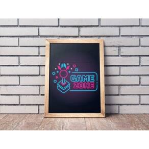 Game zone neon - 20x30 Baixa (vinil) - Vidro: Sem Vidro | Cor: Branca