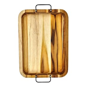 GAMELA RETANGULAR BANDEJA DE MADEIRA TECA COM ALÇA