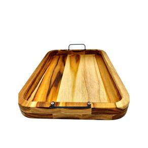 GAMELA RETANGULAR BANDEJA DE MADEIRA TECA COM ALÇA