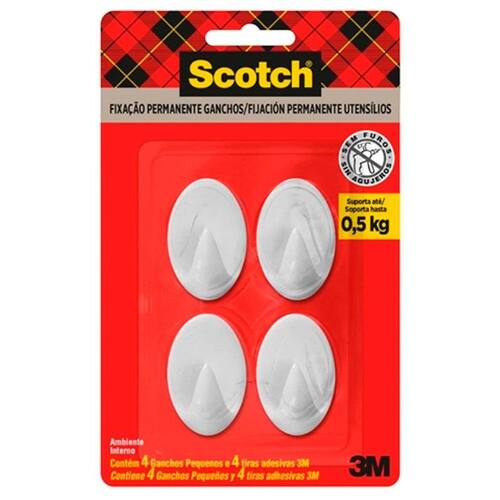 Gancho adesivo Scotch branco pequeno 4 unid HB004684310 - 3M