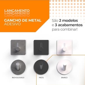 Com design moderno, composto por linhas simples e cores elegantes, os ganchos de metal combinam com qualquer ambiente.Possuem adesivo de fácil aplicação e uma vez instalado corretamente consegue suportar até 5 kg.Benefícios:Produtos autoadesivos que podem ser fixados em diversas superfícies, assim como vidros, paredes e pisos, de forma prática, sem a necessidade de contratar um profissional ou ter ferramentas. São as vantagens na economia de tempo e dinheiro, assim como evitam orisco de danificar pisos ou furar canos.Ideais para serem instalados em superfícies lisas, tais como: vidros, MDF, porcelanato, granito e mármores, trazendo comodidade e organização para o seu banheiro.Características:Material: Aço Inoxidável e AdesivoDimensões: Largura 45mm x Altura 45mm x Comprimento 30mmPeso: Quadrado 0,058 Kg - Redondo 0,045 KgValidade: IndeterminadaLimpeza: Lavar com água e sabão Ean: 7898711791354