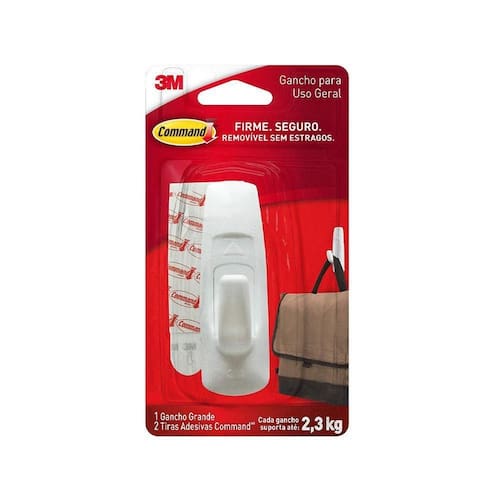 Detalhes Aplicação forte, remoção limpa, resultados sem danos na parede Sem deixar resíduos e sujeira, o Gancho Adesivo 3M Command™ pode ser aplicado em várias superfícies. Versátil e discreto, é ideal para quem quer deixar à mostra apenas o que mais importa: sua decoração. Cada embalagem contém UM gancho GRANDE BRANCO com dois adesivos médios, sendo que o gancho suporta até 2,3 Kg. Esqueça os pregos, parafusos ou tachas. O Gancho Adesivo 3M Command™ é muito mais fácil e rápido de pendurar Ele possui adesão firme em muitas superfícies, como pinturas, madeiras, azulejos e muitas outras. Além disso, pode ser removido sem deixar furos, marcas ou resíduos. -suporta até 2,3 Kg -organiza sua casa de forma prática -não estraga as paredes, servindo para pendurar sem furar -não deixa resíduos -gancho para pendurar fácil de aplicar e ser removido Dimensões: Comprimento: 30 milímetros Largura:27 milímetros Altura:9.5 centímetros