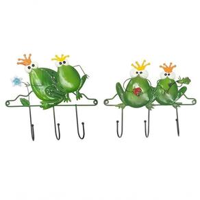 Características:- Material: Ferro- Cada unidade do produto tem 3 ganchos de metal, cada um casal de sapos decorativos, pintados- Cor predominante: verde- O gancho tem forma de casal sapo, além de 3 ganchos