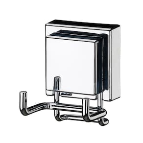 Com um acabamento quadrado, o Gancho Duplo traz beleza e sofisticação para o ambiente. Seu sistema de fixação é prático e rápido, dispensando o uso de furos e evitando sujeira. Graças ao sistema de sucção a vácuo, ele pode ser instalado facilmente em superfícies lisas e brilhantes.