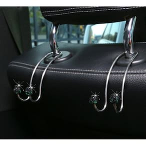 Material: Aço inoxidável Cor: Prateado com detalhe de morango Preto em strass Tipo: Organizador Tamanho: 115x32x30mm Peso: 51 g/conjunto um conjunto de 2 unidades *Pacote inclui 2 dois ganchos organizadores de banco traseiro automotivo*
