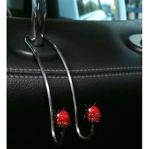 Material: Aço inoxidável. Cor: Prateado com detalhe de morango em strass Tipo: Organizador Tamanho: 115x32x30mm Peso: 51 g/conjunto um conjunto de 2 unidades *Pacote inclui 2 dois ganchos organizadores de banco traseiro automotivo*