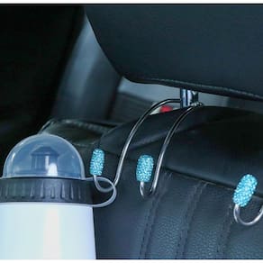 Organizadores de assento para cabeça para carro com ganchos fortes e duráveis; Detalhe em strass brilhante; Projetado para todos os racks de carro e caminhões. Ótima maneira de pendurar mantimentos, roupas, guarda-chuva, bolsas, etc.