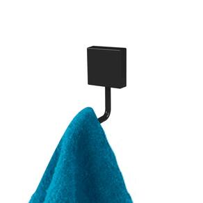Gancho multiuso moderno na cor Preta, pode ser fixado em diversos ambientes: banheiro, quarto, cozinha, lavanderia, etc. Os parafusos ficam escondidos pelo acabamento quadrado plástico metalizado.