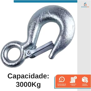 Gancho Forjado de 3000Kg com Trava de Segurança - StarferO GANCHO COM OLHAL é um acessório de fixação utilizado como terminais de lingas de cabos de aço, lingas de correntes ou cintas de poliéster nos serviços de amarração, movimentação e elevação de cargas.Possui trava de segurança que confere melhor proteção.Espeficações técnicas:- Gancho Forjado- Marca: Starfer- Capacidade: 3.000KG- Possui Trava Para Maior Segurança- É Fabricado em Aço de Ótima Qualidade- Utilizado no Içamento e Movimentação de Carga- Material: Aço ForjadoMarca: StarferRef.: 06898041 Ean: 7891638047801