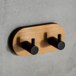 Gancho Organizador Adesivo Duplo de Bambu e Metal Sem Furo - Jolitex MEK Natural -