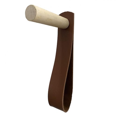 Gancho de Pinus, incluindo parafuso e bucha para instalação. Alça em couro sintético de alta qualidade, que possui gravação similar ao couro e fundo de camurça microfibra de alta resistência e anti mofo. Embalagem desenvolvida especialmente para envio de e-commerce.