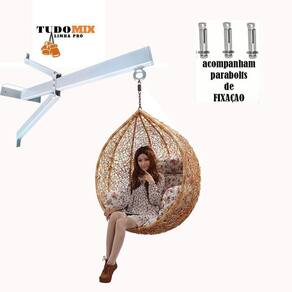 O produto deste anúncio ao suporte de parede para cadeira de balanço . Não está incluso Rede / Cadeira de balanço. As fotos e/ou vídeos utilizados no anúncio são meramente ilustrativas, servem para demonstrar a aplicação e utilização do produto.