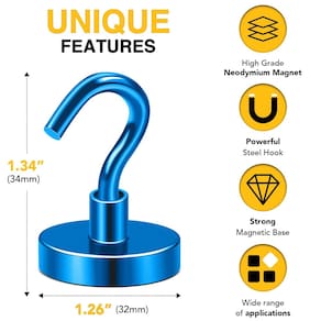 - ?Capacidade de suspensão?Estes ganchos magnéticos de metal forte são capazes de suportar peso máximo de até 50 kg em pendurar verticalmente. Gancho magnético de neodímio de terras raras com uma base de aço de 3 cm de diâmetro, o magnetismo forte dura para sempre!