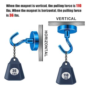 - ?Grau industrial?Os ganchos magnéticos resistentes são feitos de ímã e aço de neodímio de terras raras de alta qualidade e requintada. Compacto e leve com força forte, que pode ser fortemente atraída por ferro, níquel e outros materiais ferromagnéticos.