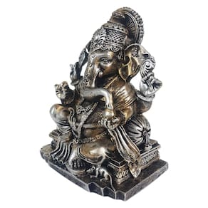 Ganesha de Resina Media na Base cor Dourado com Prata