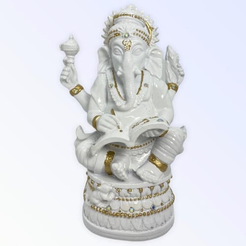 Ganesha Livro Sabedoria em Resina 17 cm - Escolha a Cor _x000D_ _x000D_ O Ganesha da Bialluz representa a sabedoria, a fortuna, o intelecto e a prosperidade. Nossa Escultura Ganesha trará muita sabedoria e luz em sua vida. Emanará muitas energias positivas em seu ambiente e afastará todas incertezas. Confeccionada em resina nossa escultura tem alta durabilidade e detalhes muito bem feitos que compõem a belíssima qualidade dessa peça. _x000D_ _x000D_ Enviamos a sua escultura em até 24 horas após a confirmação de pagamento! _x000D_ _x000D_ Escolha uma das cores disponíveis na opção COR do próprio anúncio. _x000D_ _x000D_ Especificações técnicas: _x000D_ Altura: 17 cm _x000D_ Largura: 10 cm _x000D_ Comprimento: 7 cm _x000D_ Material: Resina _x000D_ _x000D_ Por ser uma peça feita artesanalmente e pintada à mão podem ocorrer pequenas variações nas cores ou tamanhos. _x000D_ _x000D_ Caso tenha alguma dúvida nos mande mensagem que respondemos rapidinho para te ajudar da melhor forma possível! Marca: META ATACADO