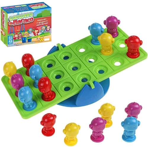 - JOGO GANGORRA DO MACACO O Gangorra do macaco estimula a interação entre pais, filhos e amigos, ajuda a criança a explorar novas experiências através do brincar, estimulando o desenvolvimento da coordenação visual motora, coordenação motora fina, percepção tátil e raciocínio lógico. Especificações: - Material: Plástico - Com Certificado: Inmetro - Recomendado para crianças acima de 5 anos. - Dispensa o uso de pilhas CONTEÚDO DA EMBALAGEM: 1 Gangorra e 16 Macaquinhos