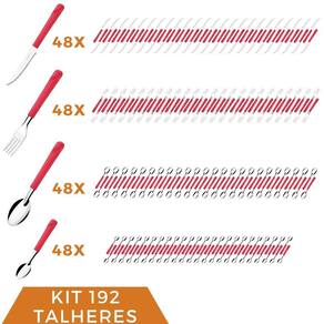Garfo Colher Faca Colher Chá Inox Vermelho Luna 192 Peças