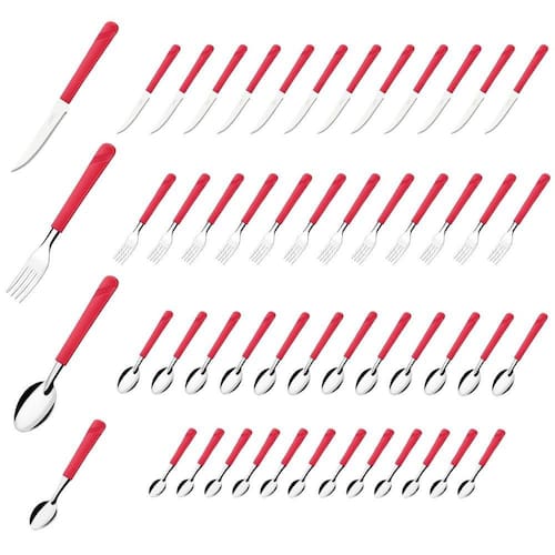 Conjunto de Talheres O conjunto de talheres de mesa da linha Luna inclui garfos, facas e colheres, cada um projetado com atenção aos detalhes e ao conforto. Esses talheres são perfeitos para jantares formais e informais, sendo duráveis e fáceis de limpar e manter. Com sua beleza atemporal e funcionalidade duradoura, o conjunto de talheres de mesa da linha Luna com cabo vermelho é uma escolha inteligente para quem busca qualidade e estilo em seus utensílios de cozinha. Tenha um conjunto completo de talheres para sua mesa, proporcionando praticidade e elegância em todos os momentos.