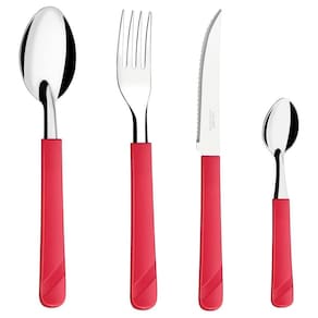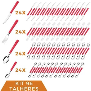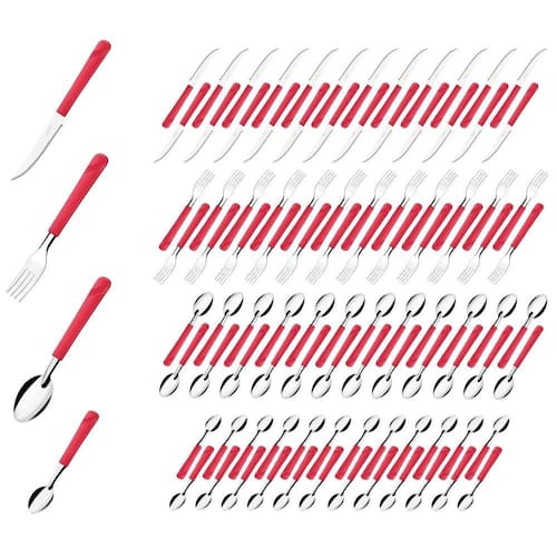 Conjunto de Talheres O conjunto de talheres de mesa da linha Luna inclui garfos, facas e colheres, cada um projetado com atenção aos detalhes e ao conforto. Esses talheres são perfeitos para jantares formais e informais, sendo duráveis e fáceis de limpar e manter. Com sua beleza atemporal e funcionalidade duradoura, o conjunto de talheres de mesa da linha Luna com cabo vermelho é uma escolha inteligente para quem busca qualidade e estilo em seus utensílios de cozinha. Tenha um conjunto completo de talheres para sua mesa, proporcionando praticidade e elegância em todos os momentos.