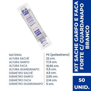 O Kit Sachê Garfo e Faca Forte com Guardanapo é perfeito para o ambiente Food Service! Tenha praticidade e higiene na hora de servir clientes e convidados com talheres resistentes e guardanapo para tornar sua refeição ainda mais completa.
