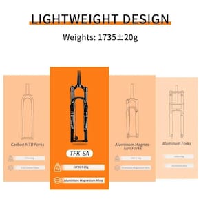 Leveza A liga de magnésio torna o garfo relativamente leve, o que pode melhorar a agilidade da bicicleta.