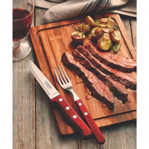 O churrasqueiro é sempre o último a sentar à mesa. Mas para garantir que os convidados também tratem o assado com respeito, nada melhor do que escolher os talheres certos para isso. A linha Churrasco da Tramontina tem cabos de madeira, que resistem ao tempo e à umidade, e lâminas em aço inox para garantir o corte perfeito das carnes.