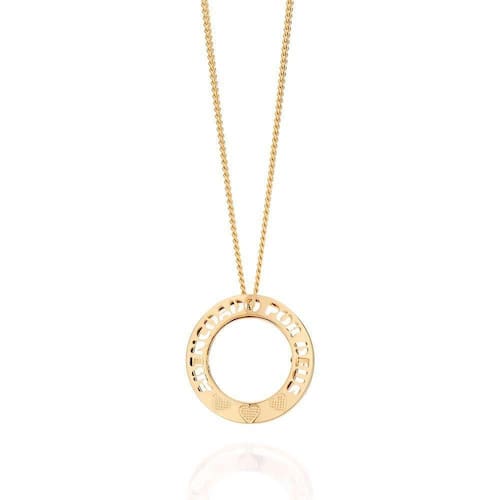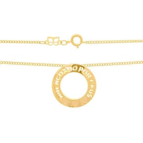Gargantilha abençoado por deus rommanel folheado a ouro dourada - Gargantilha formada por fio 0,40 lixado com pingente no formato redondo com descrição vazada abençoado por deus com detalhe de 3 corações trabalhados. Med. 50 cm ajustável à 45 cm.Características gerais do produto:Acompanha o produto: O que vem junto- certificado de joia oficial rommanel- etiqueta do produto- caixinha exclusiva de presente- sua jóia perfeitamente embalada e protegida.Garantia: 1 ano
