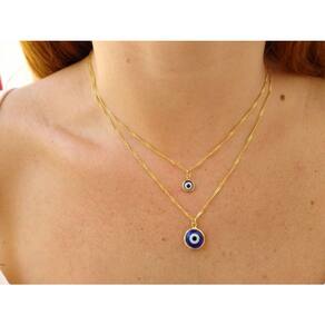 A Gargantilha Dupla com Olho Grego Folheada a Ouro da Bialluz é banhado a ouro garantindo alta resistência e durabilidade. A corrente possui 45 cm de comprimento, mas é totalmente regulável podendo ser usada por qualquer pessoa, além de contar com um pingente maravilhoso que emanará ótimas energias em sua vida. É uma maravilhosa opção de presente, com certeza a pessoa que receberá sentirá muita gratidão por ter uma peça tão bela.