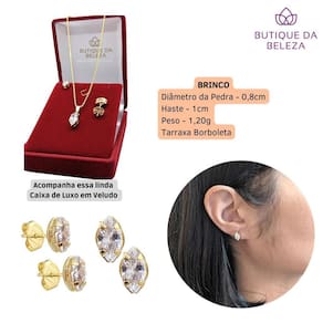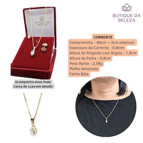 Gargantilha Folheada A Ouro Veneza 40Cm E Brinco Solitário Navete De Zircônia Nosso compromisso com você Somos a butique da beleza, empresa especializada no comércio de cosméticos e semijoias. Estamos sempre entre os melhores vendedores. Seu conforto e segurança são os nosso propósitos Servir e ajudar são nossos deveres Especificações do produto Corrente Comprimento - 40cm + 5cm extensor Espessura da corrente - 0,8mm Altura do pingente com argola - 1,8cm Altura da pedra - 0,8cm Peso aprox - 2,58g Fecho bóia Malha veneziana Brinco Diâmetro da pedra - 0,8cm Haste - 1cm Peso - 1,20g Tarraxa borboleta Descrição do produto Colar corrente feminina folheada a ouro 18k veneziana com pingente navete de zircônia e brinco solitário navete de zircônia Quando falamos em acessórios: elegância, beleza e praticidade são os fatores mais decisivos. Por isso apresentamos a vocês esse lindo kit composto por uma corrente colar veneziana com pingente de pedra em formato navete e brinco solitário em pedra zircônia também com formato navete. A malha veneziana é linda, leve e recai perfeitamente no busto além de não enrolar no cabelo. Possui laminação moderna, sendo um dos modelos mais tradicionais de correntes atualmente. Já a zircônia navete, garante sofisticação e brilho para o conjunto. A zircônia é um brilhante sintético de qualidade internacional que possui brilho próprio. Esse kit de semijoias pode servir tanto para o dia a dia , por exemplo em seu trabalho , como para noites casuais. Tenha o melhor dos dois mundos: conforto e beleza Adquira já esse lindo modelo. Nós da butique da beleza temos as peças mais exclusivas para os clientes mais exigentes. O que oferecemos Um banho de ouro 18k, com qualidade , cor e tonalidade idênticas ao de uma peça de ouro 18k. Vendemos a experiência de você poder usar um produto arrojado, se sentir bela o e elevar sua autoestima. Embalagem Caixa veludo de luxo foto do anúncio para você guardar sua semijoia e mantê-la brilhante por muito tempo. É bijuteria ou semijoia Todas nossas peças são semijoias, ou seja a deposição de ouro sobre o metal pode ser até 250 vezes maior que a quantidade de ouro 18k depositada em uma peça de bijuteria. Portanto o que nós oferecemos é qualidade. As semijoias dão alergia Não, nossos produtos são níquel free, cádmio free e Cinza free, todos esses compostos químicos são alérgicos e estão fora de nosso processo de produção. Tem Sim , 6 meses mediante apresentação do certificado de Marca: Não Informado Ean: 7893692913788
