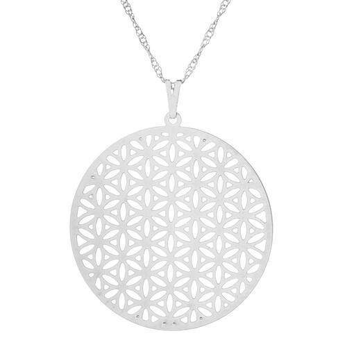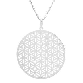 Gargantilha Folheada Amuleto da Sorte - Cor: Flor da Vida Ródio Branco