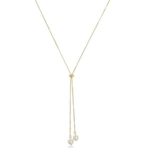 Gargantilha Gravata Pérola Banhada a Ouro 18k 1637 Gargantilha: corrente medindo 60cm de comprimento com 2 pérolas de 7mm