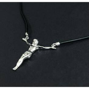 Colar de silicone preto com fecho e pingente cristo em prata