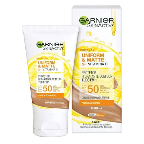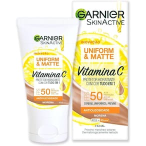 Hidratante facial protetor. Combina a ação antioxidante da Vitamina C com filtros UVA e UVB. Oferece tecnologia antioleosidade com efeito matte. Cor: Morena - se adapta ao subtom da pele. Não deixa um acabamento acinzentado ou esbranquiçado. Marca: GARNIER ###