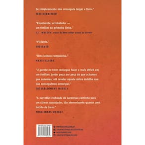 Título do livro : A garota no trem Autor : Hawkins, Paula Idioma : Português Editora do livro : Editora Record Ltda. Capa do livro : Mole Ano de publicação : 2015 Quantidade de páginas : 378 Altura : 230 mm Largura : 155 mm Peso : 440 g Tradutores : Campos Simone Data de publicação : 02-07-2015 Gênero do livro : Ficção