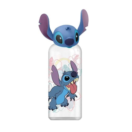 Design exclusivo 3D: A tampa de rosca é decorada com a cabeça do Stitch emborrachada, trazendo um visual único e divertido.