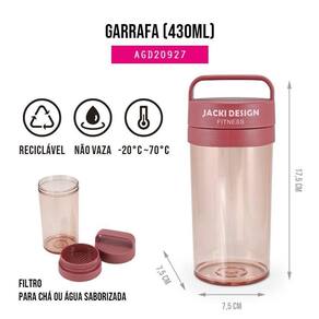 O copo transparente de 430 ml é ideal para levar água, suco ou chá para o escritório ou escola. Possui um filtro infusor, fecho colorido e alça de mão. É leve e fácil de carregar. Produto com qualidade Jacki Design. Conheça a linha completa da coleção CONCEPT e complete o seu kit! (INSTRUÇÕES DE USO: Não vai ao micro-ondas; Temperatura de uso: -20C ~80C; Limpe usando uma esponja macia e detergente).