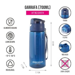 A Garrafa Squeeze de 700ml é ideal para levar água, suco ou chá para academia, escritório ou escola. Possui um filtro infusor, trava de segurança e alça de mão. É leve e fácil de carregar. Produto com qualidade Jacki Design. Conheça a linha completa da coleção CONCEPT MAIS e complete o seu kit! (INSTRUÇÕES DE USO: Não vai ao micro-ondas ou lava-louças; Temperatura de uso: -15C ~50C; Limpe usando uma esponja macia e detergente).