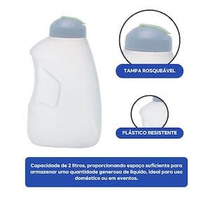 Capacidade de 2 litros, proporcionando espaço suficiente para armazenar uma quantidade generosa de líquido, ideal para uso doméstico ou em eventos.