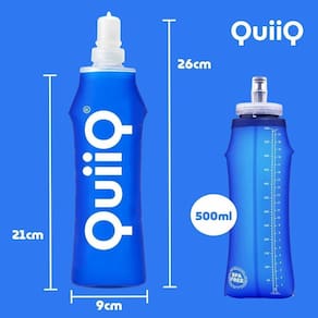 Garrafa Dobrável Flexível de Silicone QuiiQ Sports. Com 500ml de capacidade, é a escolha perfeita pra quem busca leveza, praticidade e desempenho nos treinos.